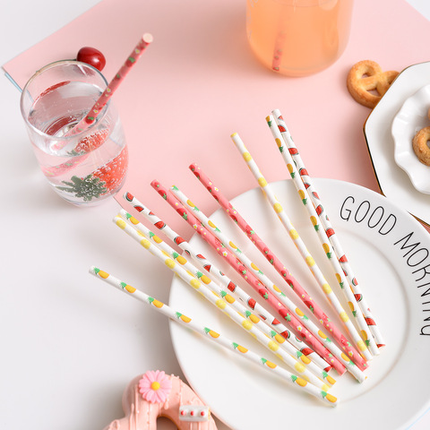 القش الورقي نمط الفاكهة مزيج القش ورقة قابلة للتحلل مرة واحدة الديكور الصيف الحزب