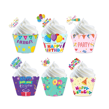 6Sets Gelukkige Verjaardag Kinderen Verjaardagsfeestje Cartoon Print Papier Cupcake Doos Cover Decoratie Met Papieren Vlag Topper Decoratie