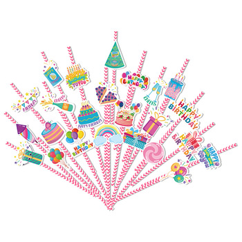 Nieuw Ontwerp Baby Baby Verjaardagsvlag Planten Wegwerp Papier Stro Verjaardagsceremonie Drankdecoratie Papier Drinkstro