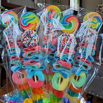 50 adet/takım 50 adet şeffaf zararsız plastik uzun şeker çanta parti şeker hediye ambalaj çanta mühür bağları ile