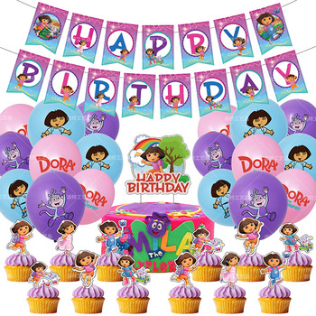 Dora tema parti doğum günü balon çekme bayrağı dekorasyon