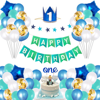 Baby First Birthday Balloon Decoração Set Pink Blue Flag 12 Inch Lantejoula Balloon Baby Boy Birthday Set